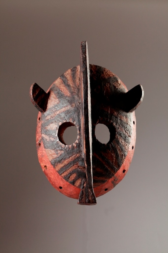 Famous for the great abstraction of their forms, these masks, unlike the majority of African masks, frequently contain a pictorial element which consists of geometric designs traditionally made in black, red and white.