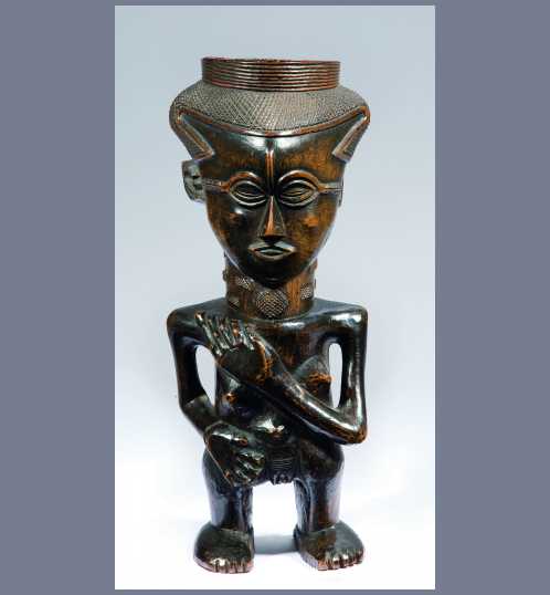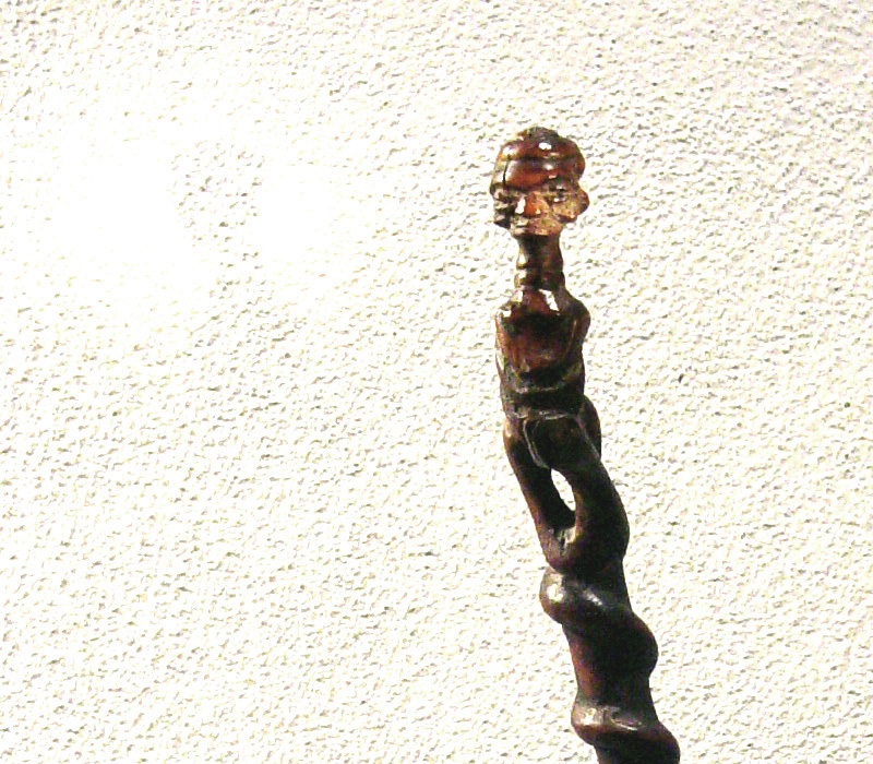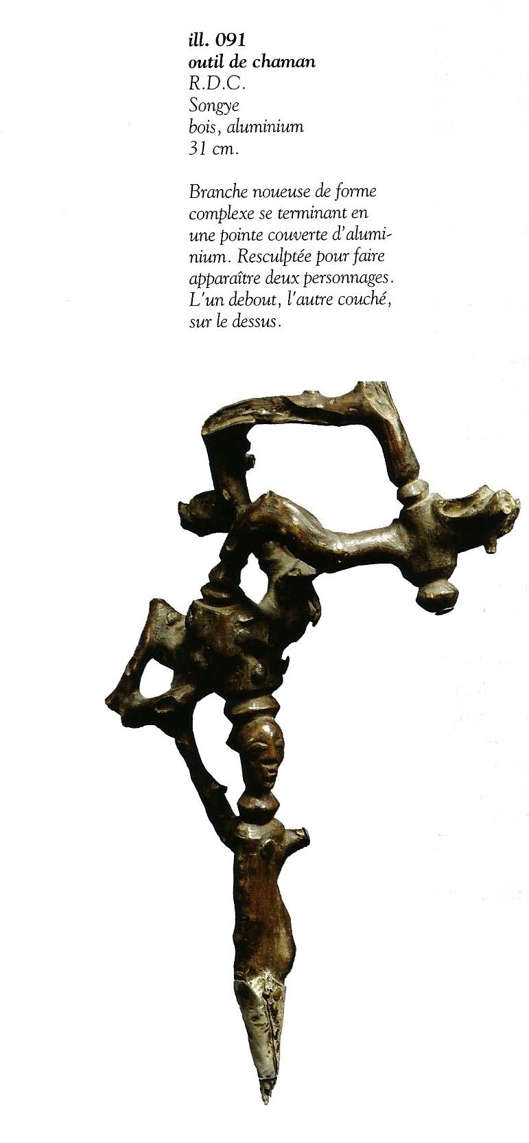 Un altro esempio, espressione della creatività artistica e dell’abilità esecutiva di un ignoto scultore congolese del Kasai, è uno scettro di divinatore, manufatto di forte potenza evocativa e rimarcabile qualità estetica.(Ancienne collection Carlo Lamote, photographe cinéaste pour la télévision congolaise « Société Congovox » 1966).