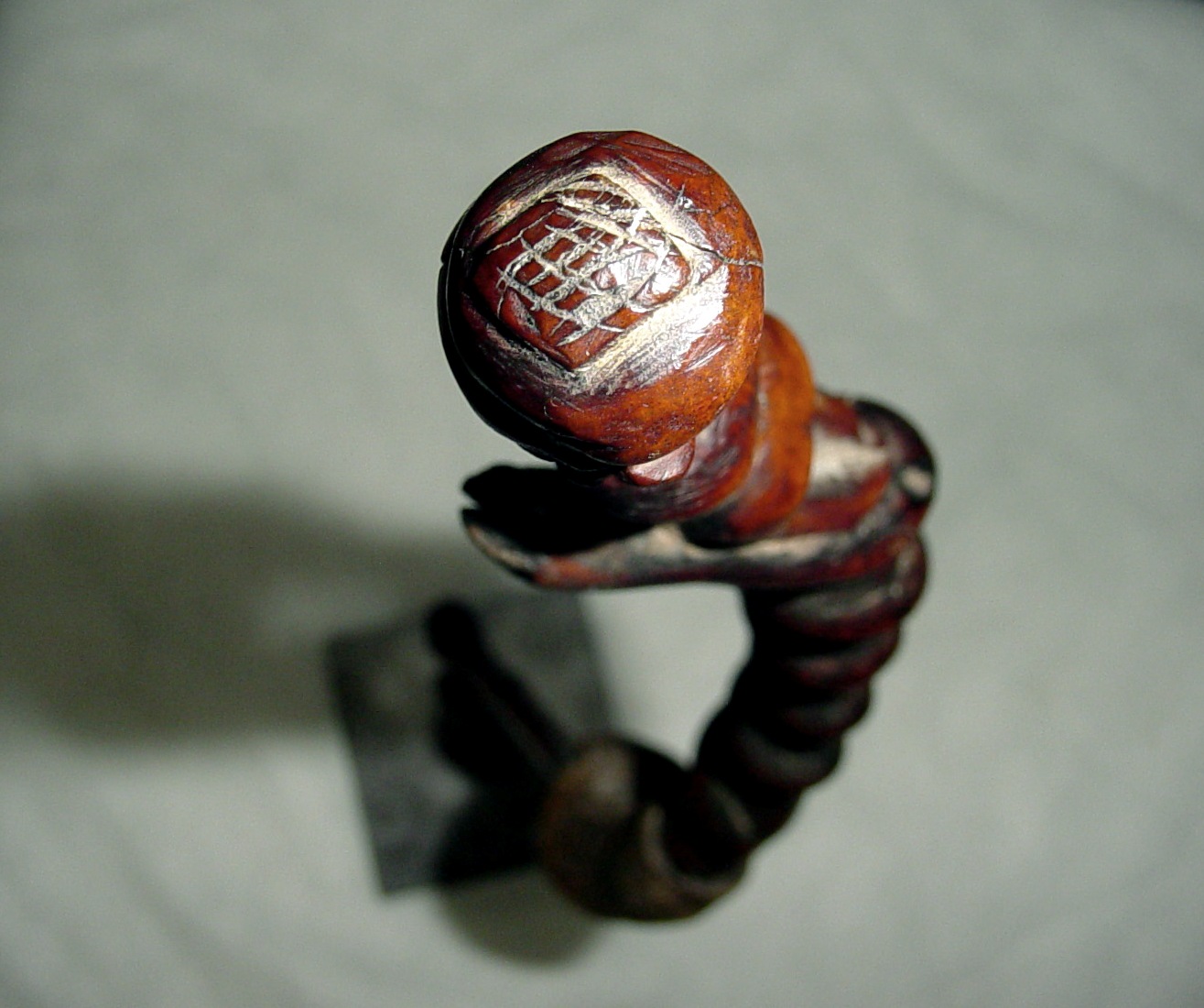 Ugualmente sconosciuto è il significato del serpente, congiunto alla figura femminile, che rinvia a contenuti di sincretismo cristiano in un oggetto di ispirazione sciamanico/divinatoria.