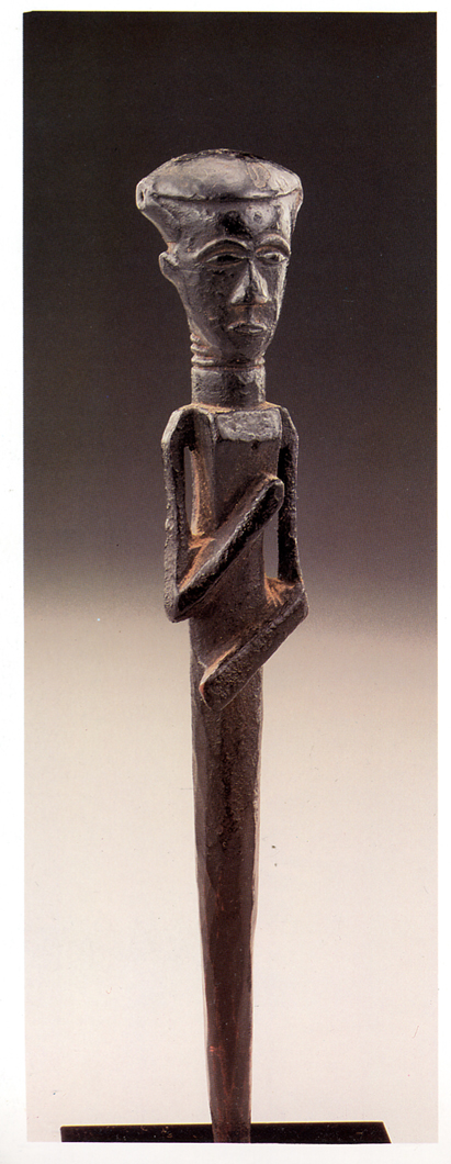 Un’altra significativa antica scultura in cui l’artista ha assecondato le naturali forme del tronco dell’albero è la figura ermafrodita Dogon Niongom alta 132 centimetri, conservata al Musée du quai Branly ( M.H. 35105106), in cui lo scultore ha assecondato la sinuosità del legno in quanto pertinente alla rappresentazione della figura mitica del Nommo, antropomorfico nella metà superiore del corpo e con aspetto serpentiforme nella rimanente metà.