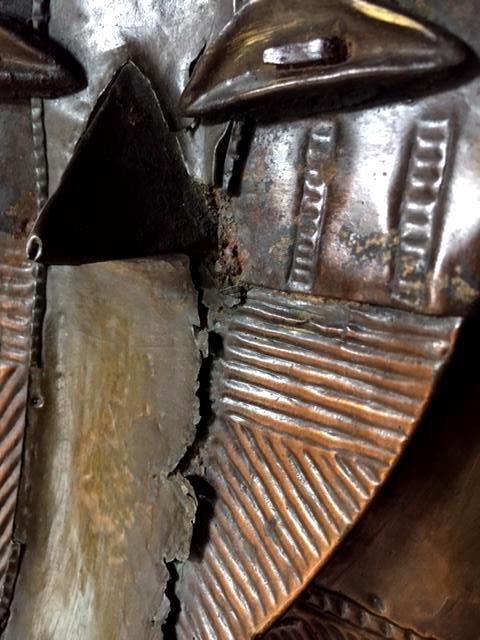 The spread then in the seventeenth century. Copper Angola in particular, introduced by Europeans, first the Portuguese, then the Dutch, British, German and French whose apex was in the nineteenth century., has favored the creation and implementation of Kota reliquaries; As locksmiths have refined the technique of processing, not forgetting the rare red copper local and passing to the use of plates and strip worked like a wire instead of copper wire originally used by Maohngué and Shamaye.