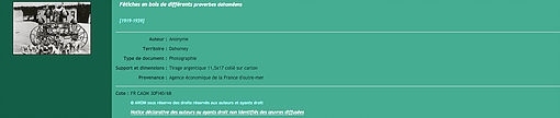 Parmi les sites consacrés à l’Art africain traditionnel, notre favori en ce qui concerne les photos de champ est le site Yale RAAI réalisé par Jim Ross (lien ici). On y trouve parmi les plus anciennes photographies de champ avec références précises et même débats entre spécialistes. Un must.