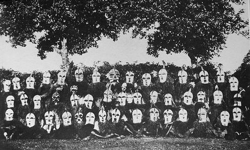 En guise de liminaire, on se doute que cette recherche a souvent pour fonction de légitimer l’authenticité et/ou de faire prendre de la valeur. Sur ce point, grande est la tentation de faire parler les photos au delà de ce qu’elles peuvent exprimer. Je prends pour exemple cette fameuse photo de champ où l’on voit des masques Songe (Songye) alignés tels des enfants à l’école primaire. Rien de moins naturel que cette pose ! Le fait que la photographie soit ancienne ne garantit pas au sens strict que les masques photographiés ont dansé (j’aurais quand même tendance à le présumer compte tenu du fait qu’il sont complets).