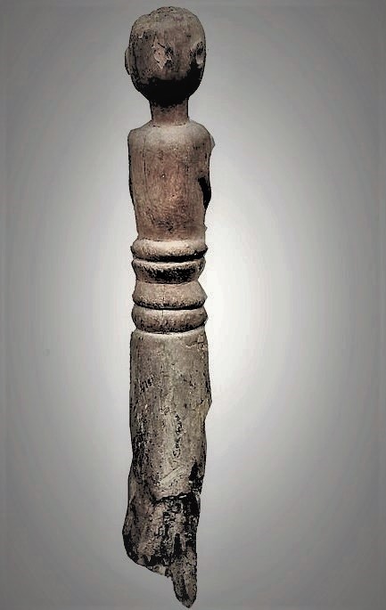 Questa figura Igbo, anch’essa della Nigeria meridionale, apparentemente scabra, è in realtà simulacro simbolico che condensa l’essenza del suo fine, non edulcorato né ammansito da rumorosi quanto inutili decorazioni; la sua forza sta nella presenza compatta, essenziale, che propone, anzi impone, la medesima intensità di partecipazione a quanti intendano condividerne il sotteso messaggio e l’immateriale dono spirituale.