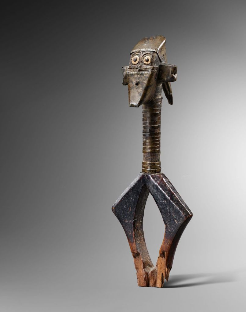 Figura da reliquiario, mbumba bwété Sango, Gabon, XIX secolo Legno, lamine di ottone, bottoni di madreperla, h. 29 cm Collezione privata, Belgio Provenienza: A.Bovis Photo: Studio Asselberghs