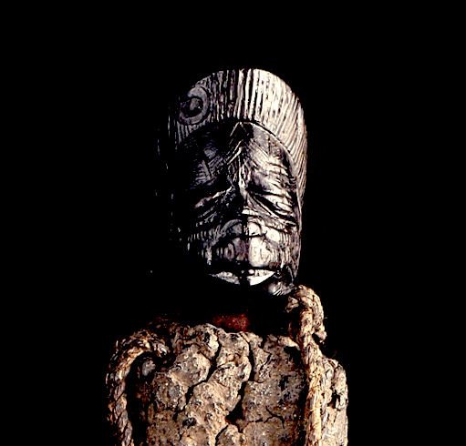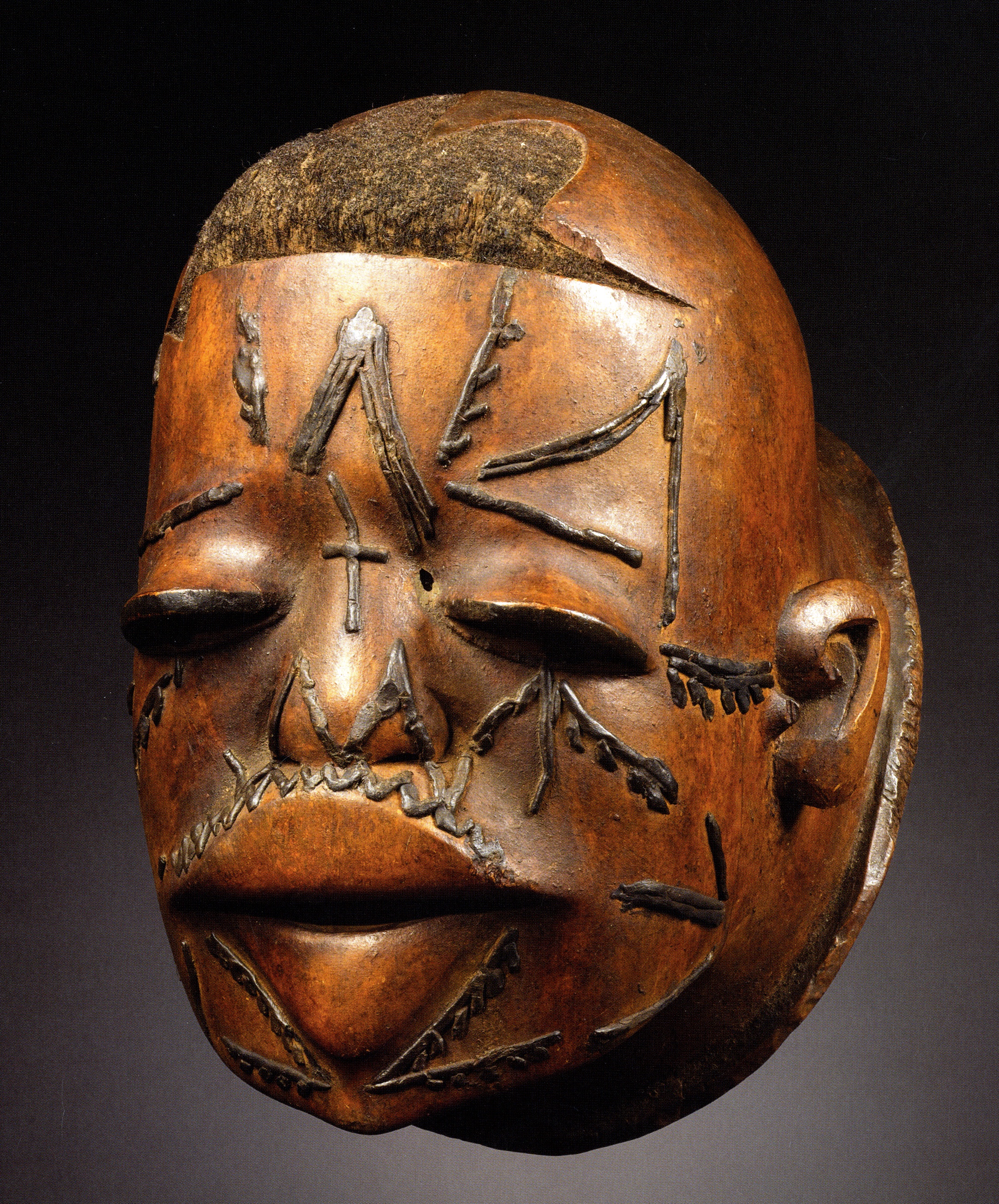 Mapiko con i tatuaggi realizzati con cera d’api. 27,5 cm. Coll. Jacques Germain, Canada