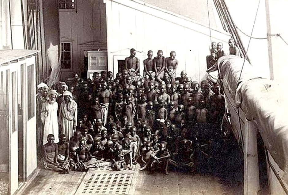 Le père Léonard Allaire (1870-1947) et ses esclaves libérés, Brazzaville, Congo, vers 1890. © Archives de la Congrégation du Saint-Esprit.
