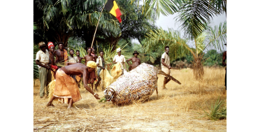 Mgr Prosper Augouard (1852-1921) avec le chef Bétou faisant le « pacte de sang », Oubangui, 1892. © Archives de la Congrégation du Saint-Esprit.