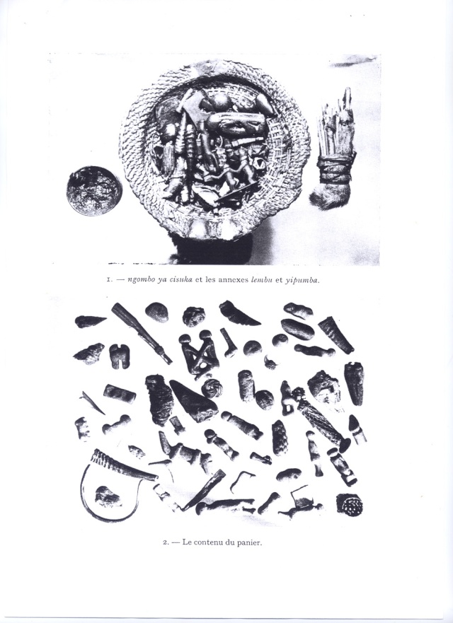 “Le società senza scrittura hanno sviluppato talvolta dei metodi abbastanza complessi di comunicazione talvolta. Tra questi, si può annoverare una delle tecniche divinatorie dei Tshokwe, tecnica che loro stessi chiamano ngombo y a cisuka, che significa ” tecnica divinatoria da scuotimento.” Infatti, consiste nello scuotere un insieme di oggetti (60/100) contenuti in un cesto da cui consegue una” lettura” dei fatti a seconda della disposizione che hanno assunto gli oggetti medesimi presenti nel cesto.