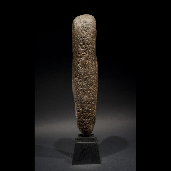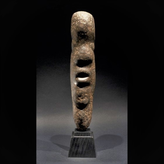 Like the previous, it is a female sculpture with the head and face sweating for long and repeated libation and rituals purpose. The signs of scarification on the face are the same and in this sculpture, instead of the belt as in the previous one, is visible a set of longitudinal incisions in the pubes.